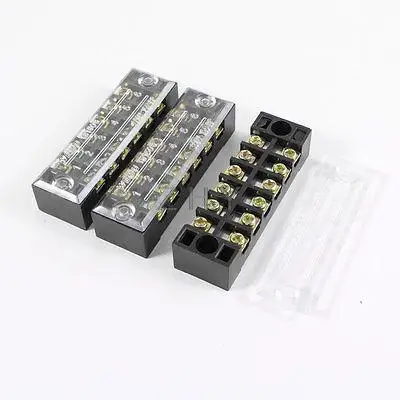 3 Pcs 600V 15A 6 Positions 6P Dual Rows Covered Barrier Terminal Block Strip