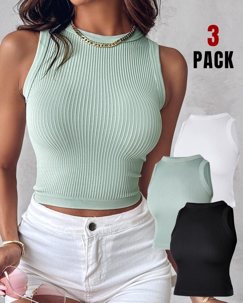 3 Piece Crewneck Racerback Ribbed Tank Tops Summer Basic Sleeveless Slim Fit Rib-knit Crop Tops, Style1