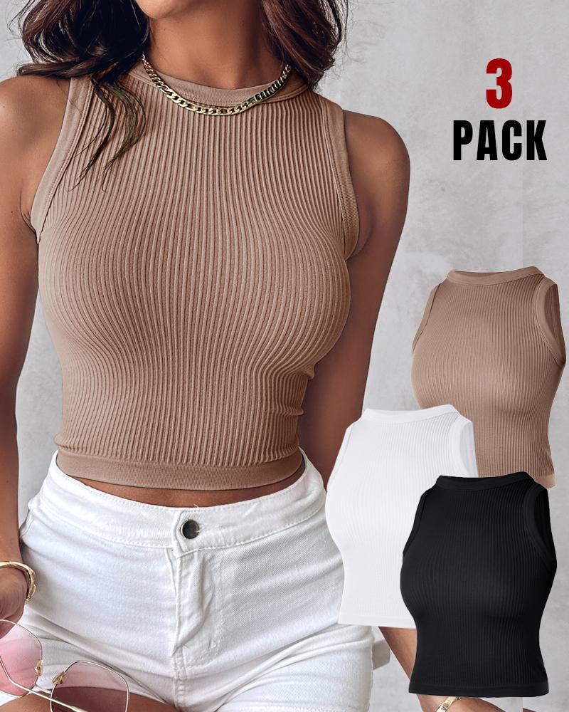 3 Piece Crewneck Racerback Ribbed Tank Tops Summer Basic Sleeveless Slim Fit Rib-knit Crop Tops, Style2