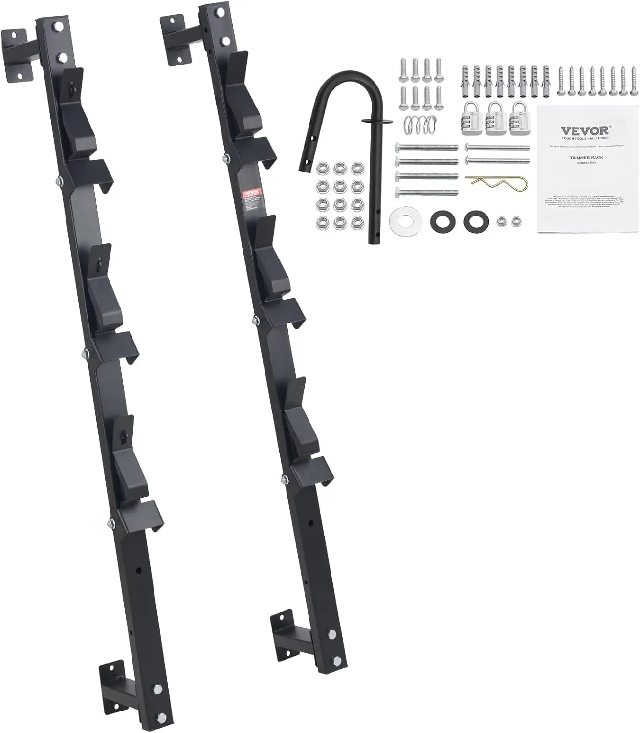 3-Place Trimmer Rack with Lock, Wall or Trailer Mount, Durable and Secure Storage for Garden Tools