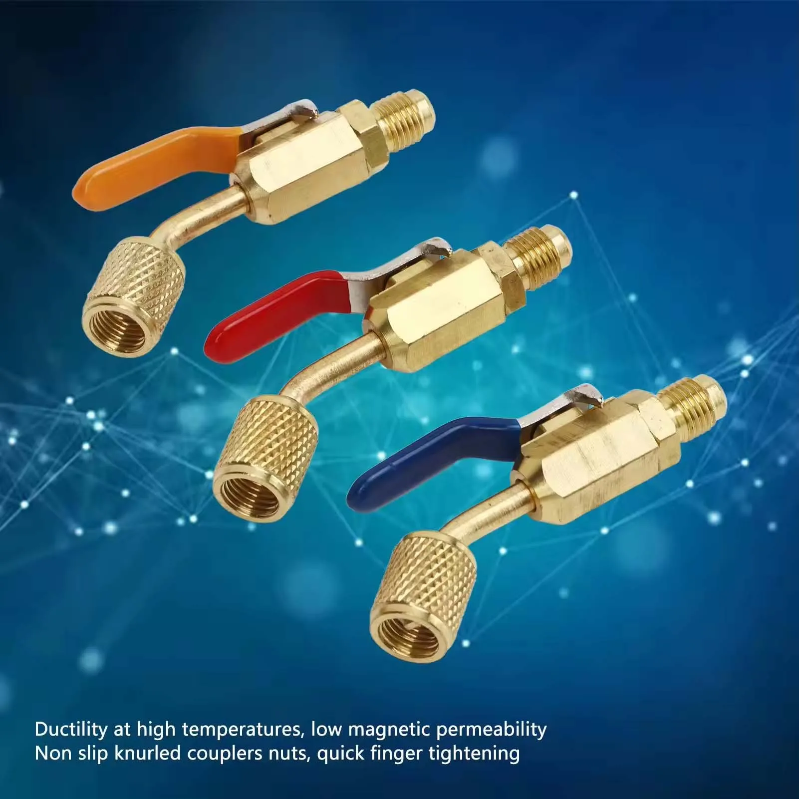 3 Sets Refrigerant Angled Compact Ball Valve Fit for R410A R134A R12 R22 R502 AC HVAC Refrigeration Charging Hoses Car Accessory