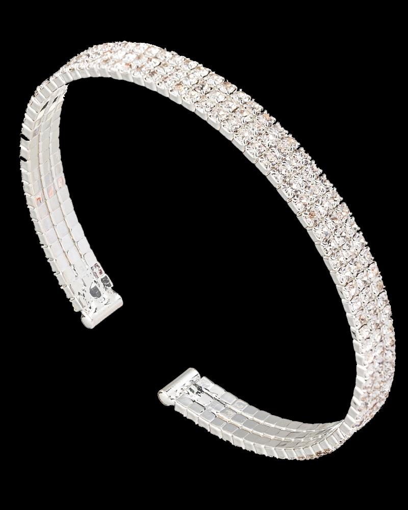 3 Strand Rhinestone Stretch Bracelet, Silver