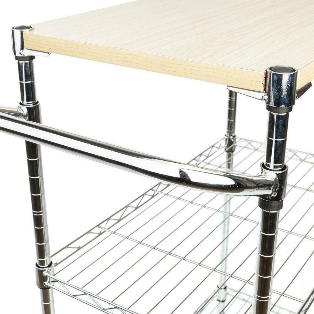 3-Tier Rolling Kitchen Trolley Cart Island Rack Basket Shelf Stand Workstation