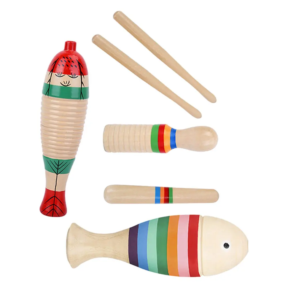 3 set Wooden Guiro Instruments Set Rainbow Rattle Fish Shaped Percussion For Kids Beginner Toddler Music Learning Educational