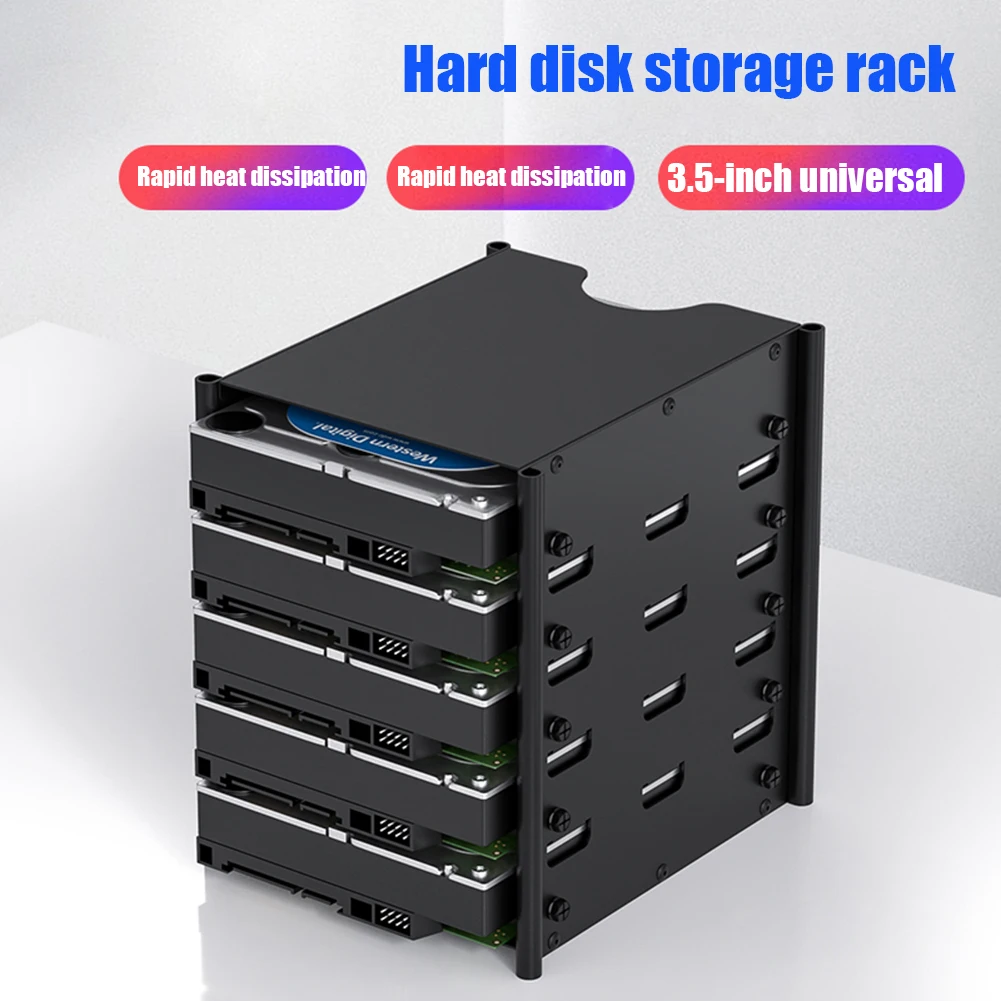 3.5 inch Metal Hard Drive Storage Bracket Desktop 5-Layer Hard Drive Mounting Rack Multilayer HDD Container Shelf Organizer Box
