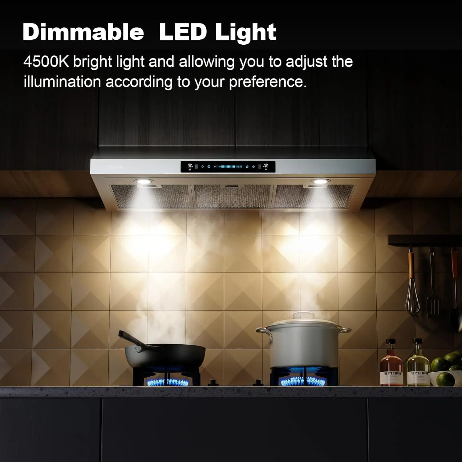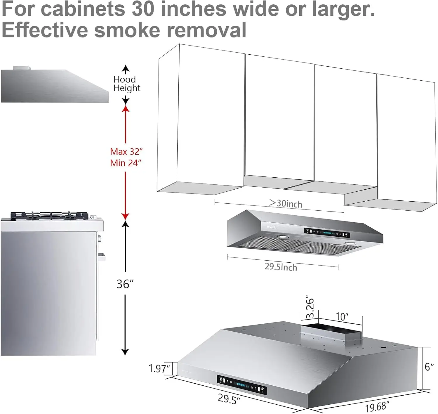 30-дюймовая бленда для шкафа с 900-CFM, 4-скоростной датчик жестов и сенсорная панель управления