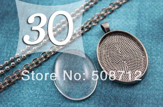 30 наборов DIY 22x30 мм Набор подвесок антикварная, серебряная, овальная подвеска с подходящей цепочкой и стеклом