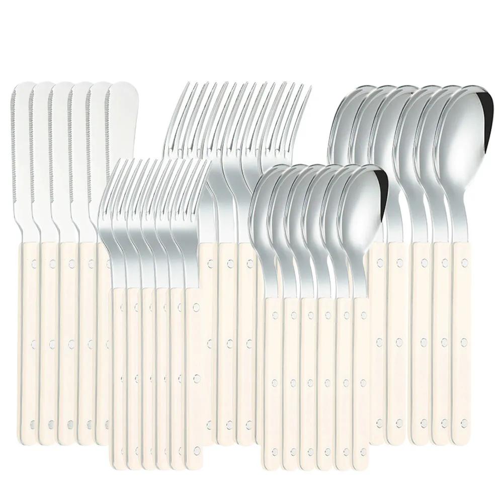 30 шт. Наборы столовых приборов Акриловая ручка Набор ножей и вилок Нержавеющая сталь Обеденный Зеленый Серебристый Западная посуда Дом Кухня Столовые приборы
