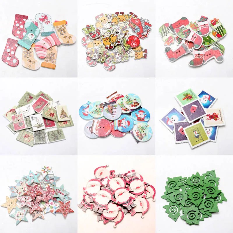 30 шт., декоративные деревянные пуговицы с двумя отверстиями