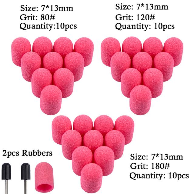 30 шт. колпачки для шлифовки ногтей с 2 шт. резинками для снятия гель-лака, сверла для ногтей, шлифовальная песочная лента для педикюра, маникюра, машины розовый
