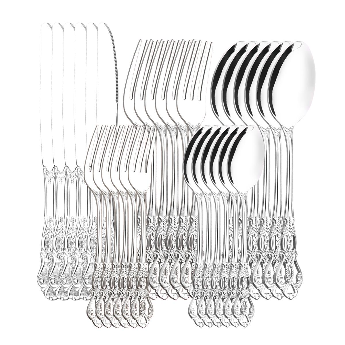 30 шт., матовый золотой королевский набор столовых приборов, обеденный нож, десертные вилки, ложка, столовые приборы, столовые приборы из нержавеющей стали для дома, кухонный набор посуды серебряный