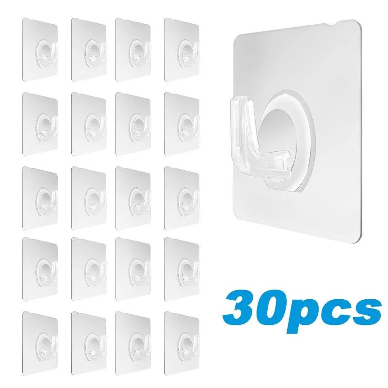 30 шт. настенные крючки, прозрачные прочные самоклеящиеся ключи, дверные настенные вешалки для полотенец, подвесные аксессуары для кухни и ванной комнаты, крючки