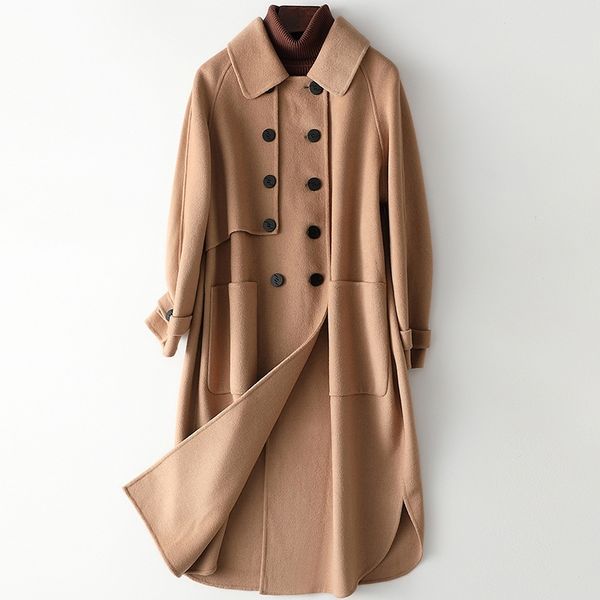 long term stock simple and honest double-sided loose long women's woolen coat new leisure in spring 2021, Black