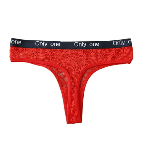 huanledash Ladies G-string Lace Letter Solid Color Hollow Out Thong Briefs Panties Women Sexy Underwear for Daily Wear