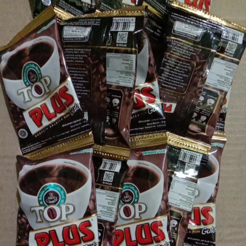 TOP Coffee Plus Gula merupakan produk dari Wings Foods, yang merupakan perpaduan dua jenis kopi terbaik yaitu Robusta dan Arabica. TOP Coffee dicampur dengan menggabungkan dua biji kopi terbaik, Robusta dan Arabica. Karakter Arabica memiliki aroma yang eksotis, sedikit fruity, manis, dan sedikit tajam.