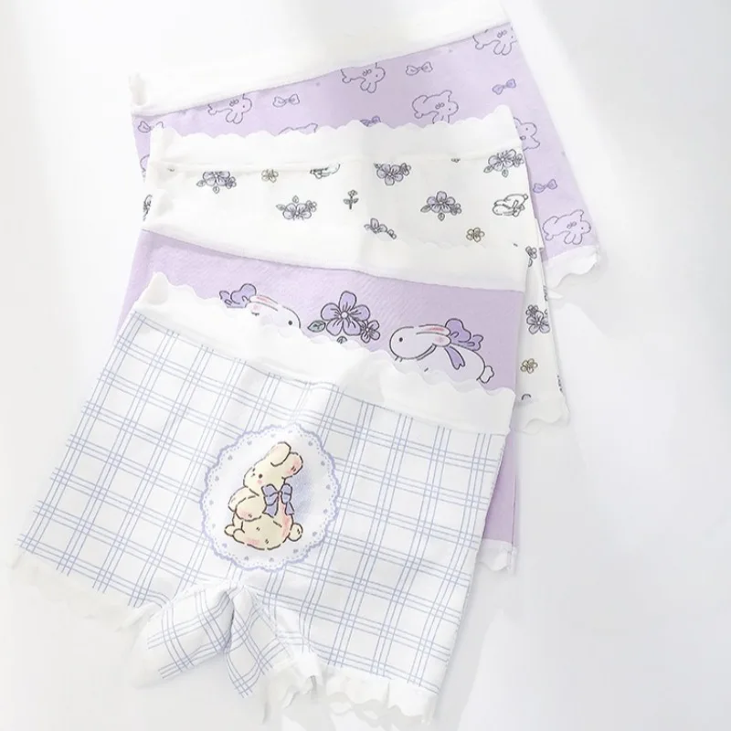 4PCS Girls Cotton Soft Antibacterial Panties Kids Cute Cartoon Print Underwears 3+y Young Child Thin Breathable Comfort Knickers