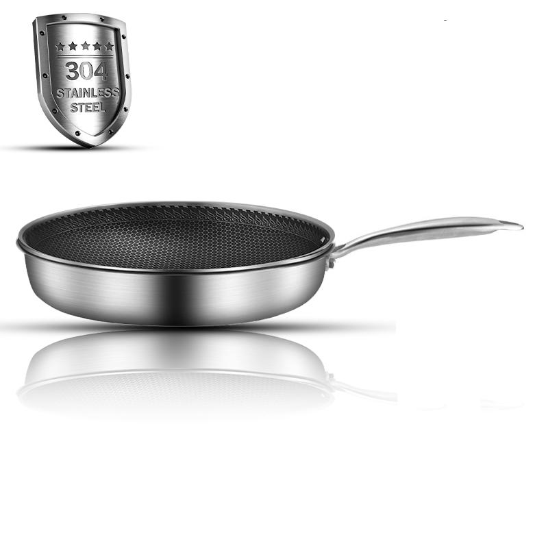 304 Высококачественная антипригарная сковорода Плоская сковорода Кухонные принадлежности Без масла Дым для стейков Блины Жареные овощи Сотовая кастрюля 32cm