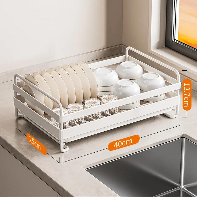 304 Нержавеющая сталь Кухонная сушилка для посуды Многофункциональный держатель для хранения Полка для слива на столешницу Сушилка для посуды белый
