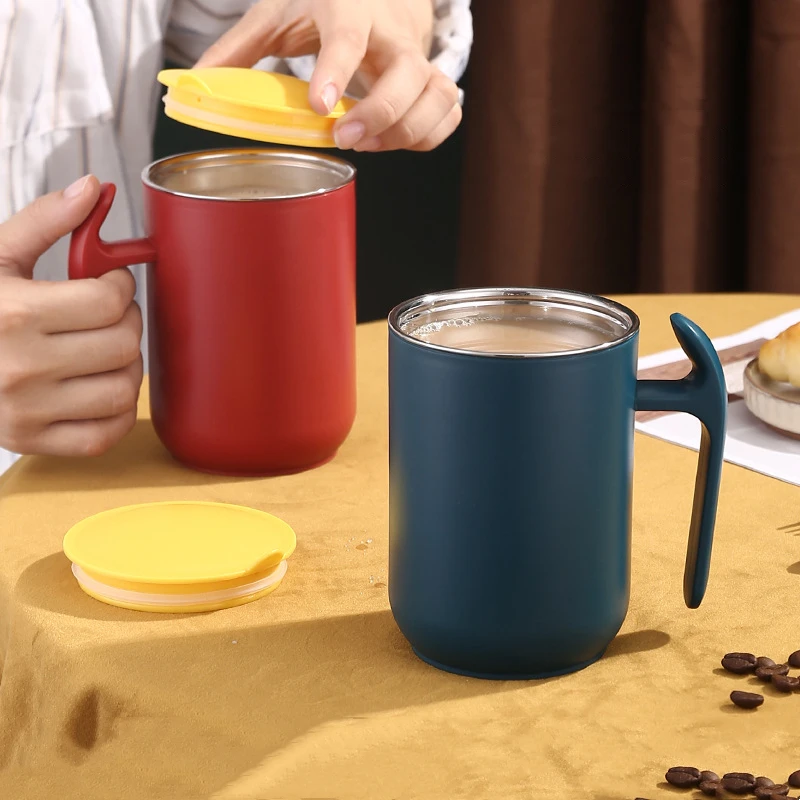 304 кофейная чашка из нержавеющей стали с крышкой, чайные чашки, кофейная кружка, двойные стенки, антибликовые стаканы для питьевой воды, чашк...