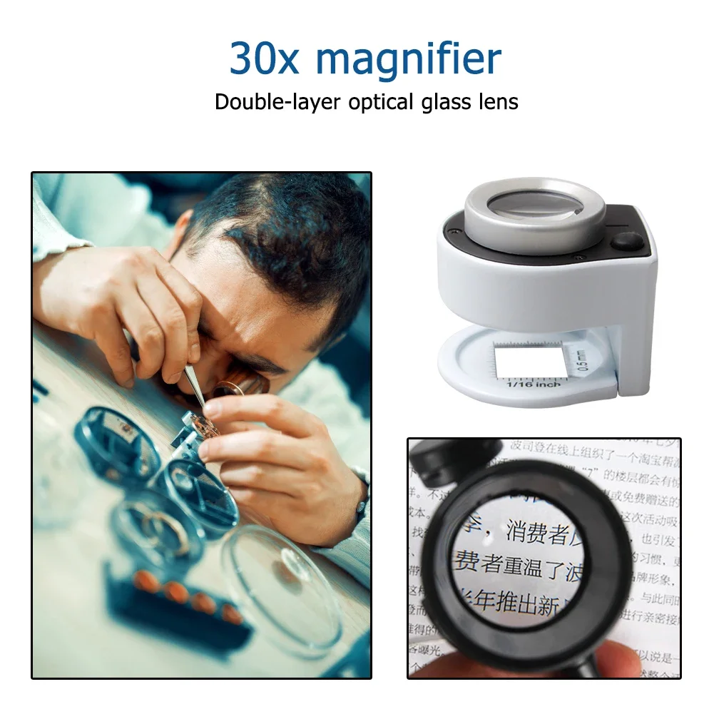 30X Double-layer Optical Glass Lens with 6 LED Full Metal Folding Linen Tester Loupe Magnifying Glass Thread Counter Magnifier