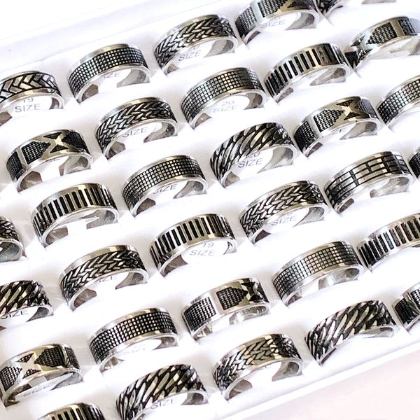 30pcs bulk classic punk men wedding band rings stainless steel jewelry accessory hip hop rock street fashion gifts wholesale, Silver