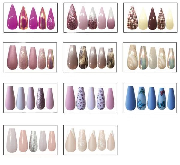 30pcs shiny ballet false nails tips long coffin fake fingernails tip acrylic adhesive gel full cover for women girls diy nail art 3115653, Red;gold