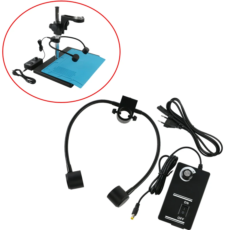 32mm 25mm 22mm Adjustable LED Double Spot Light Microscopic Illuminator Side Light Lamp for Stereo Trinocular Microscope Camera