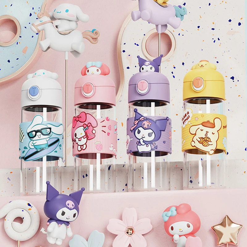 330 мл Милая стеклянная бутылка для воды Cinnamoroll Kuromi My Melody портативный креативный чайник прозрачная многоразовая детская чашка для улицы