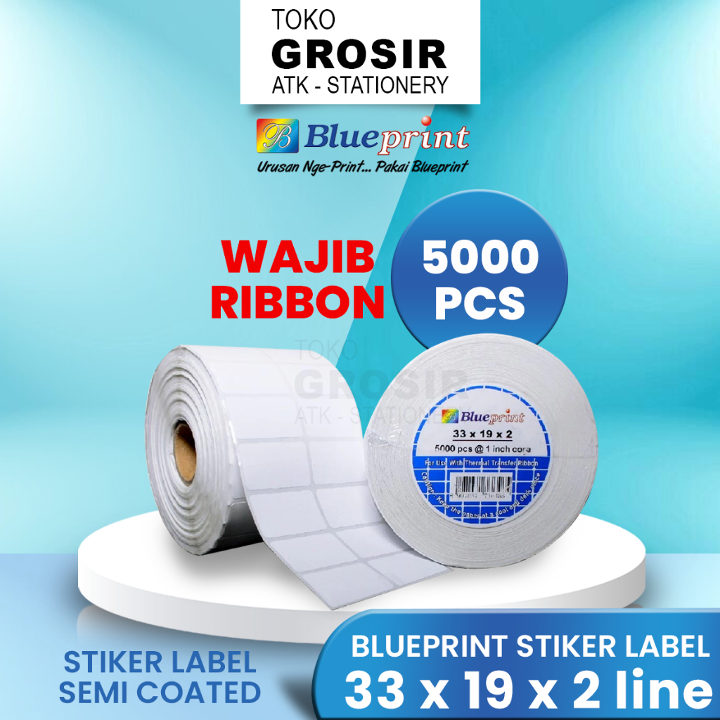 Sticker label Barcode 33x19mm 2 Line Semi Coated BLUEPRINT Core 1" isi 5000 Pcs