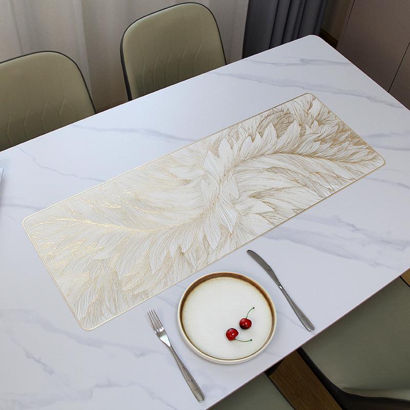 33x91см Скатерть с перьевым узором Простая ПВХ дорожка на обеденный стол Золотое тиснение Не полая Изоляционная подкладка 33x91cm золотой