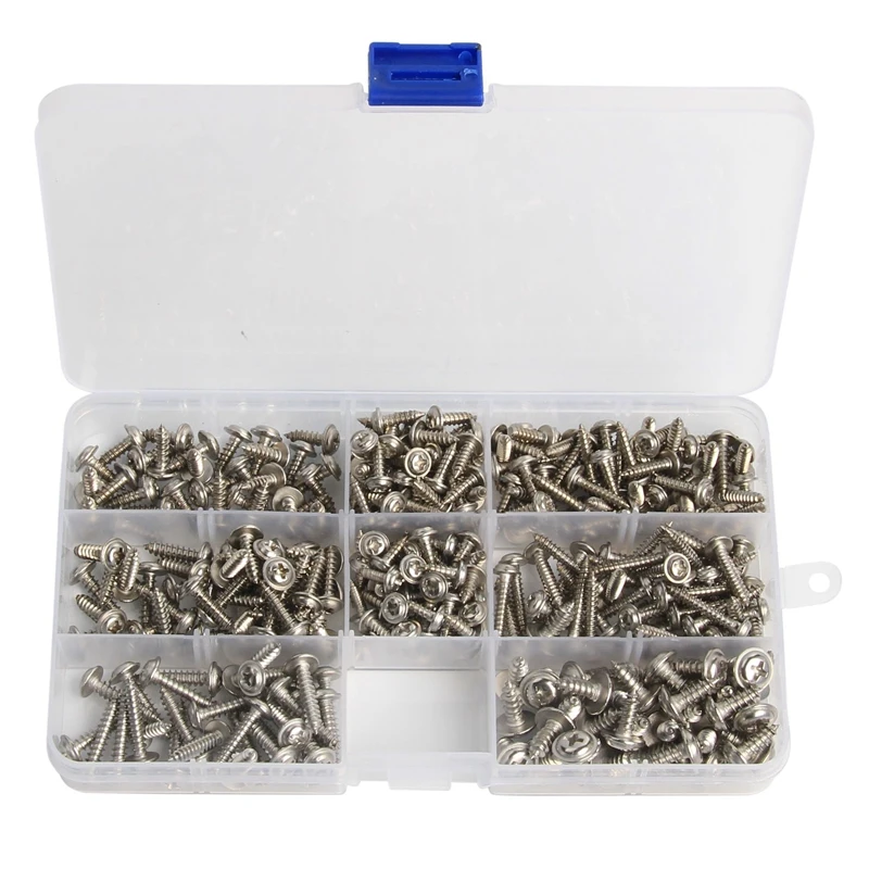 340 шт. винты из нержавеющей стали, винты-саморезы, набор металлических винтов с коробкой для хранения