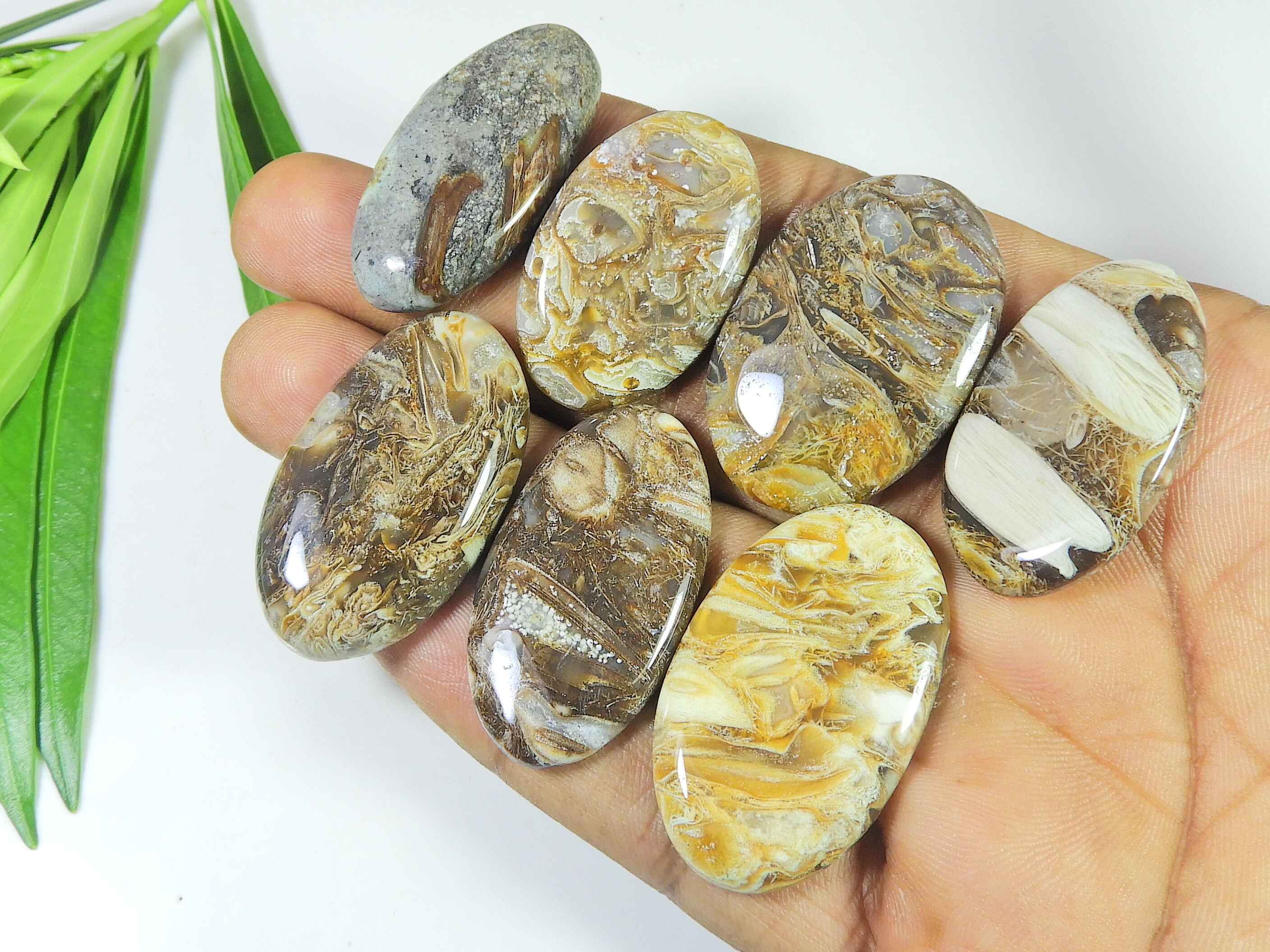 35-38MM Natural Rock Calci Oval Cabochon Loose Gemstone 7 Pcs Lot 251Cts. RQ-2349