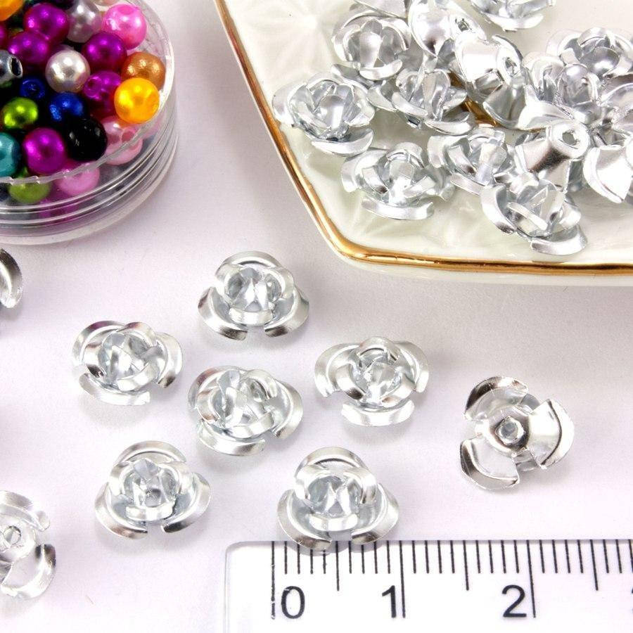 (35-40шт) Розочки металл Ø9мм Серединки Цвет - Серебро (сп7нг-0502)