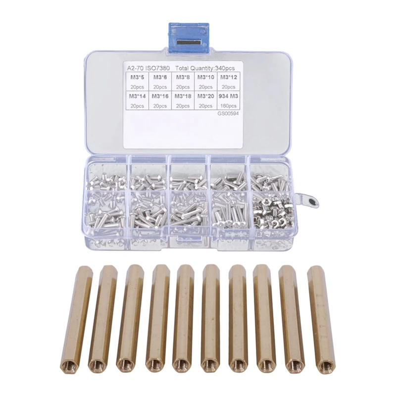 350 шт. M3 винты, гайки, крепление: 10 шт. M3 X 50 мм, внутренняя резьба, латунная Шестигранная прокладка и 340 шт. M3 Шестигранная гайка