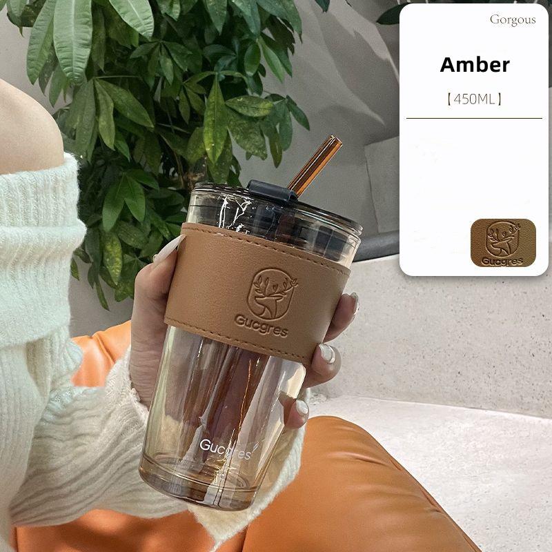 350/450 мл соломенная чашка для кофе с крышкой, термостойкая бутылка для воды, посуда для пива, кофейная кружка с соломенной кожей с принтом оленя, стекло 350ml-450ml