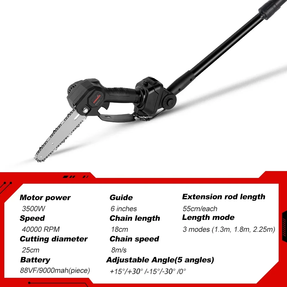 3500 Вт телескопическая Электрическая цепная пила 2,25 м, беспроводной садовый инструмент для обрезки деревьев, пила высокой ветви для Makita, батарея 18 в