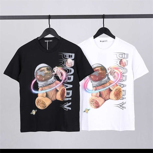 36% off summer street trendy cartoon space planet astronaut short sleeved men and women's couple loose t-shirt, White;black