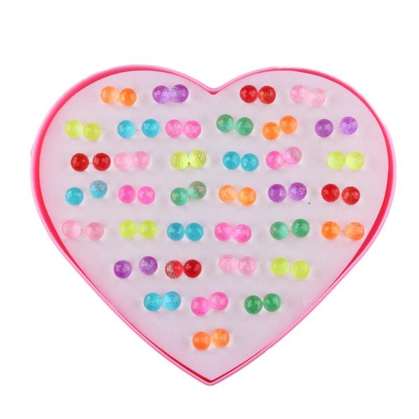 36 pairs cute stud set love heart box lady girls crystal ball earring studs, Golden