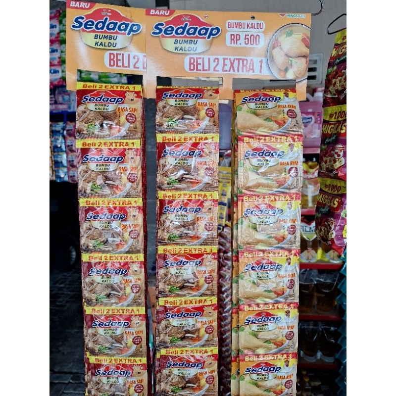 Bumbu kaldu rasa sapi dan ayam merk Sedap adalah produk yang dijual dengan jumlah 36 biji dalam 2 renteng. Produk ini tersedia dalam varian ayam, sapi, dan mix ayam dan sapi. Keuntungan dari menggunakan kaldu rasa sapi dan ayam adalah memberikan rasa gurih pada masakan dan memudahkan dalam memasak.