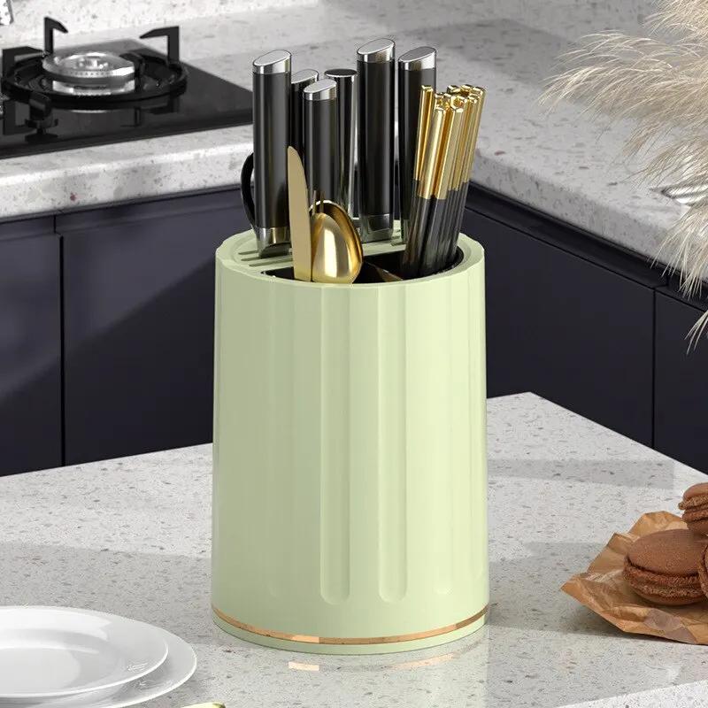 360°Rotatable Organizer Stand Rack Kitchen Organizer Multiple Compartments Store Forks Knives and Other Cooking Tools зелёный