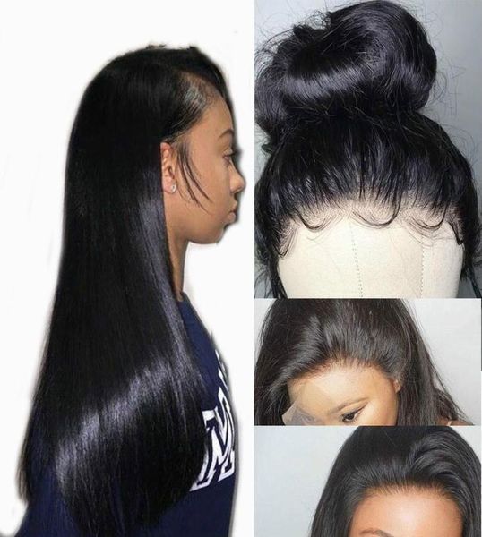360 lace frontal wigs human hair with baby hair pre plucked gluless lace wig peruvian straight wig for women hair full end4460963, Black