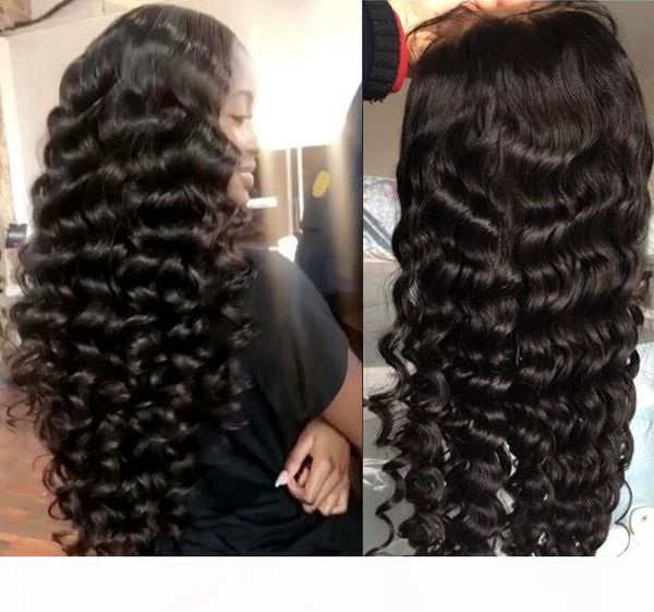 360 lace wig deep wave curl 180% density preplucked hairline brazilian human hair 360 lace frontal wigs with baby hair ing, Black;brown