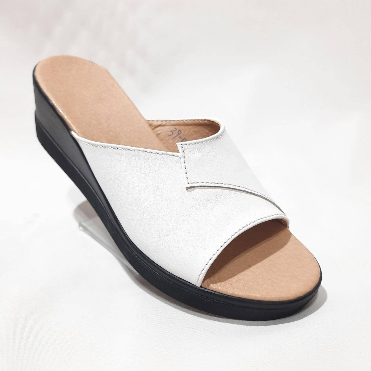 38-24,5 Женские шлепанцы натуральная кожа на танкетке Белые Последняя пара