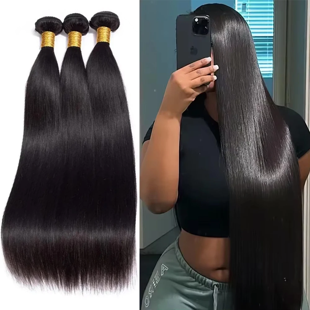 38 40 Inch 16A Bone Straight Bundles 3 4 Bundle Double Weft Virgin Black 100% Unprocessed Raw Remy Human Hair Bundles Extensions