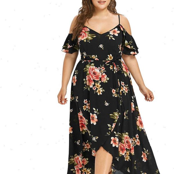 38 sukienki vestidos ropa mujer plus size women dress casual short sleeve cold shoulder boho flower print long winter dress, Black;gray