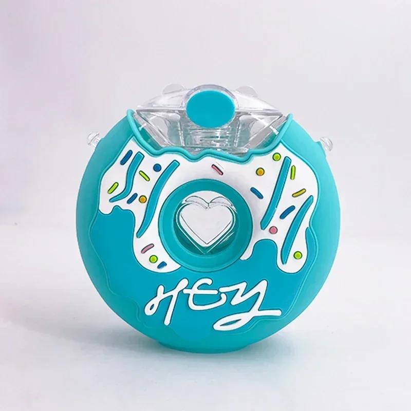 380 мл чашка в форме пончика, детская чашка для кормления с соломинкой, милые чашки для воды в форме пончиков, мультяшная герметичная уличная бутылка для воды 380ml синий