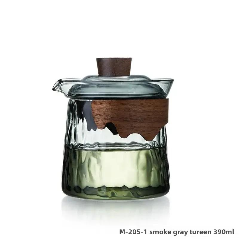 390 мл Жаростойкое стекло Гайвань Защищающий от ожогов Деревянный рукав из грецкого ореха Набор чайных чашек Гунфу Саньцай Чайная пиала Чайная посуда