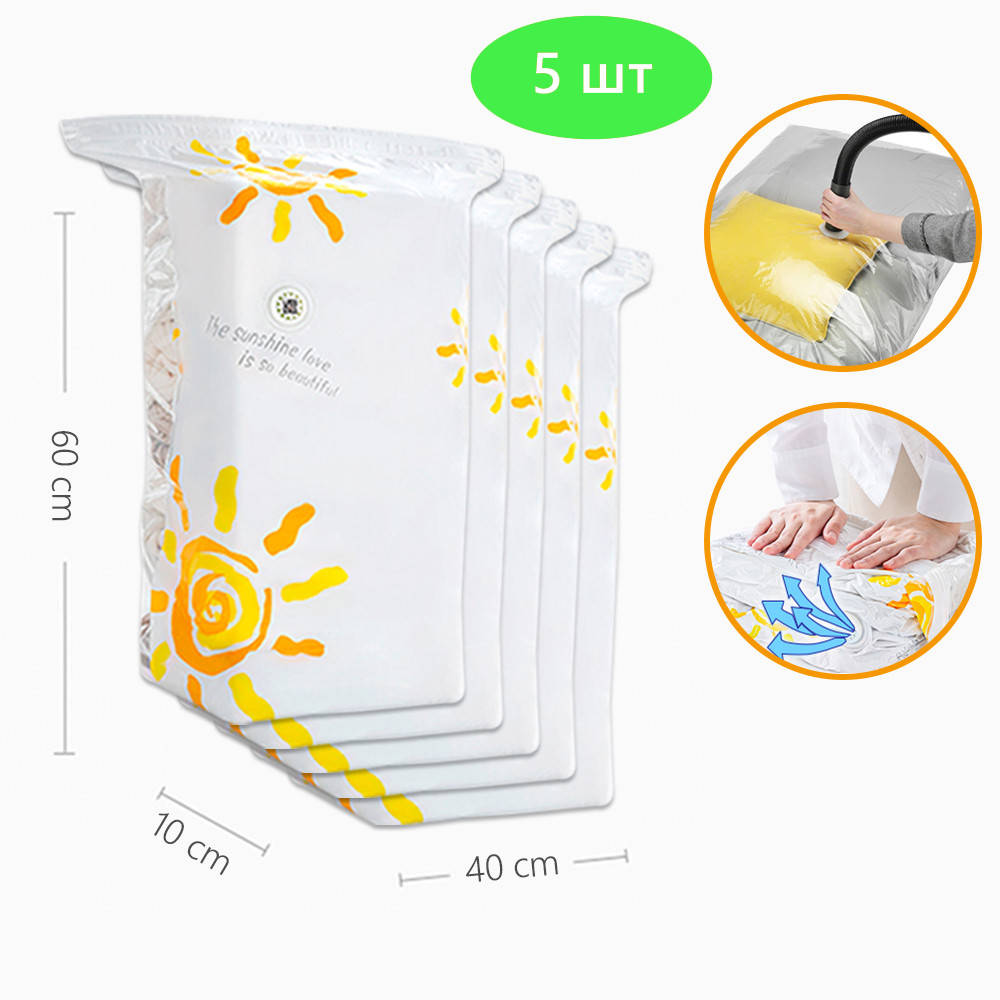 3D Вакуумные Пакеты для Одежды 40х60х10 см - Комплект из 5 пакетов - Пакеты для Хранения Одежды ❤️ ТМ ComShop, Белый