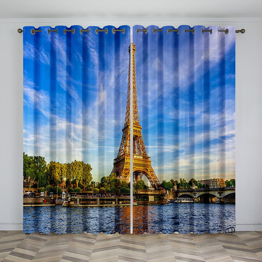 3D Знаменитый Пейзаж Здание Солнцезащитные Шторы Роскошная Гостиная Домашний Декор Спальня Тонкие Шторы 2 Панели 100W130H(CM)40x51in&Grommet Top