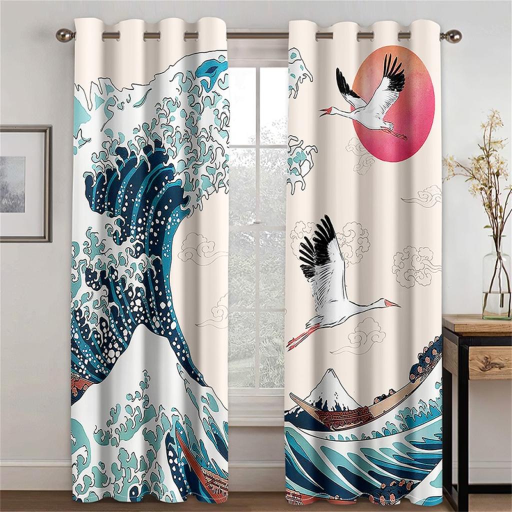 3D Океанские волны Великолепные цвета Волшебный декор 2 панели Гостиная Спальня Кухня Балкон Окно Декор Шторы 50W130H(CM)X2PCS&Hook